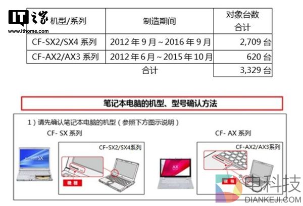 松下官方发布消息,旗下生产的TOUGHBOOK CF-SX系列、CF-AX系列笔记本电脑,在长年使用下可能导致电池组劣化,引发起火或造成火灾。