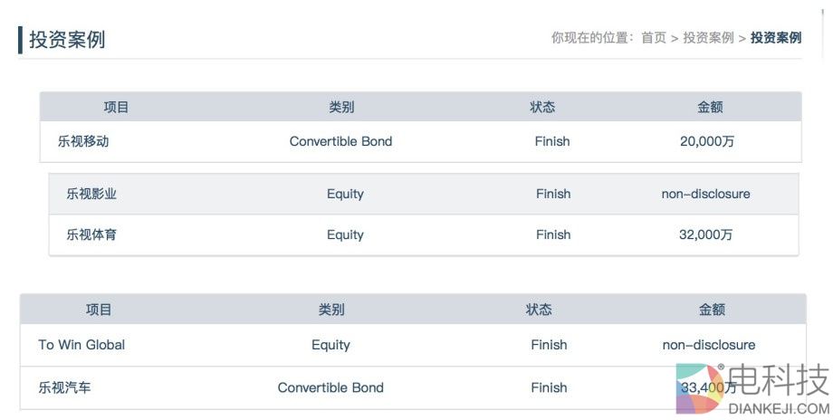 (注:蓝巨投资官网展示的部分乐视业务)