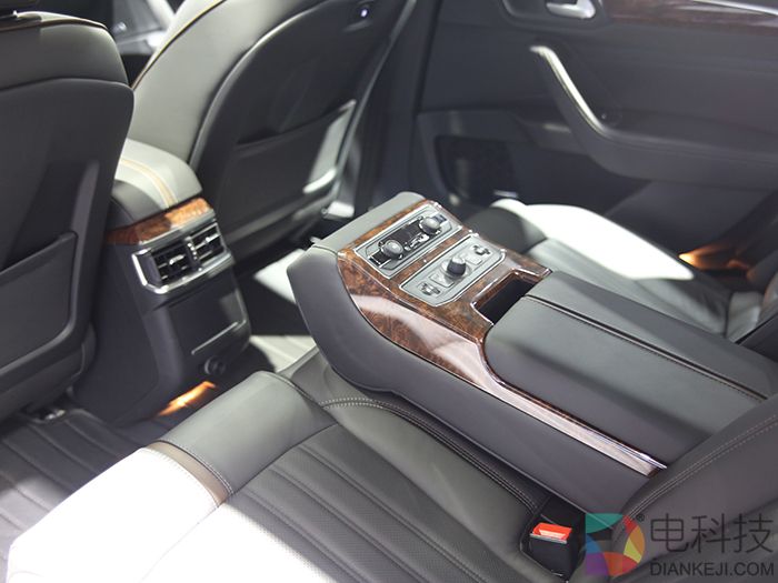 内饰部分,东风A9运用了大量桃木装饰体现豪华感,就广州车展上的这台展车而言,整体内饰做工还是极为精细的,后排与门把手的处理,也较为考究。