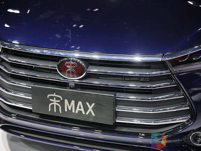 2017年广州车展,号称“大美7座MPV”的宋MAX成为了比亚迪展台的顶梁柱,应用家族最新的“Dragon Face”龙脸设计语言,大嘴的前脸造型使用了多横幅电镀条格栅,配合矩阵式LED前灯。