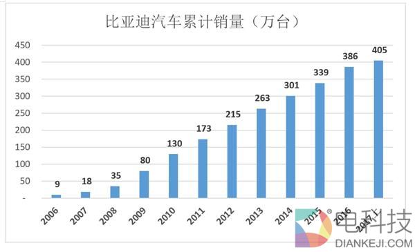 据统计,截至2017年6月末,比亚迪累计销售汽车405万辆。