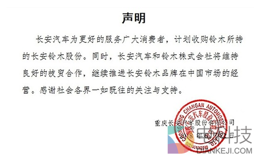 6月22日,重庆长安汽车股份有限公司发布《声明》称:长安汽车计划收购铃木所持有的长安铃木股份。
