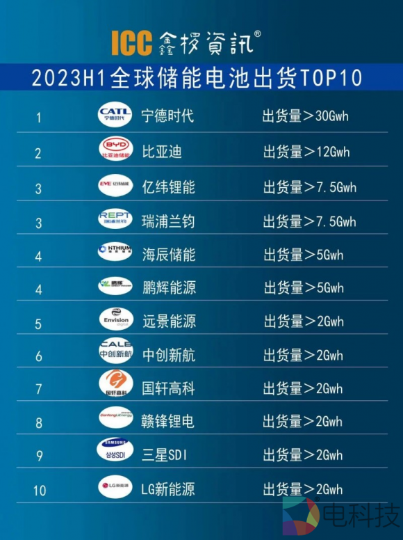 根据ICC鑫椤资讯统计数据,在2023H1全球储能电池出货TOP10榜单中,瑞浦兰钧以出货量超7.5GWh排名第三,仅次于老牌企业宁德时代和比亚迪。而在今年早些时候,据市调机构InfoLink Consulting发布的2023Q1全球储能电池出货TOP10企业中,瑞浦兰钧的出货量就超过了3GWh,位列TOP3。