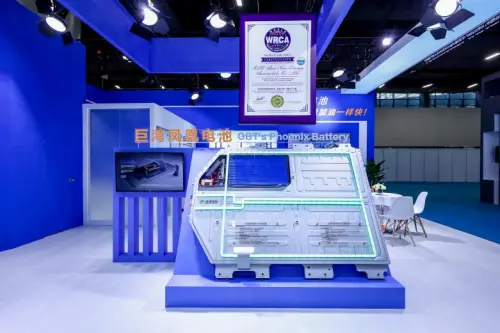 在本次车展上,巨湾技研携全新自主研发的5-15分钟超快/极快充电芯、巨湾凤凰电池闪耀亮相。