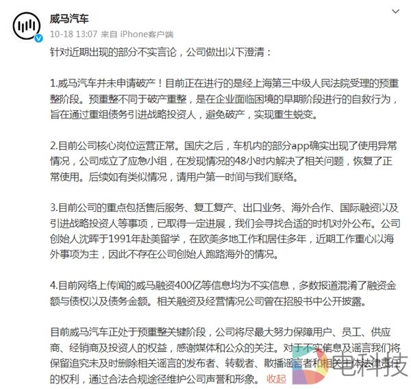 不过,由于大多数网友不懂预重整,威马汽车还解释了何为预重整。