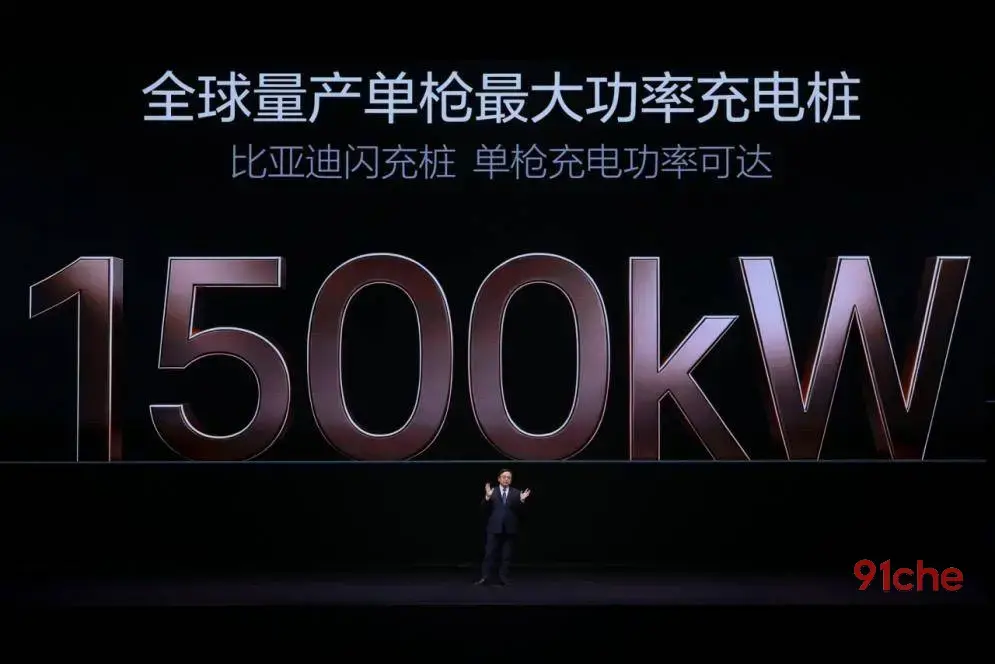 为实现第二代刀片电池的闪充速度,比亚迪还全新开发了闪充桩,单枪充电功率做到了:1500kW!是全球量产单枪最大功率充电桩!配合超级快放的储能系统,突破了电网容量限制,而且绝不会伤害电网,是对社会最友好的充电解决方案。