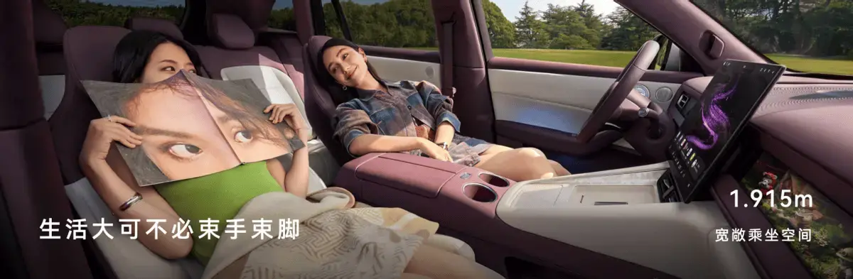 - 副驾零重力座椅部分配置需要选装,详情请见参数页或咨询客服。零重力座椅应在驻车状态下使用,使用时请留意周围安全 ↑