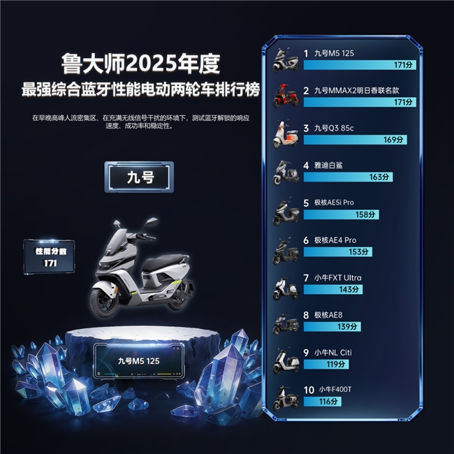 九号M5 125能够同时在智能综合能力与蓝牙性能两个维度登顶,并非偶然。从鲁大师实验室的评测逻辑看,其评价体系已从“配置有无”转向“体验优劣”,强调真实场景中的稳定、流畅与可靠。这正是九号长期以来聚焦的用户痛点——将智能化从营销话术转化为可感知的日常体验。
