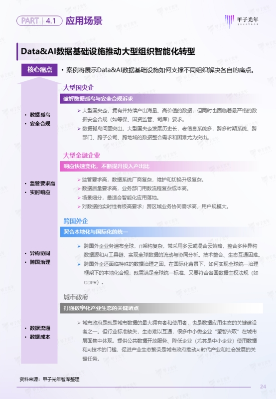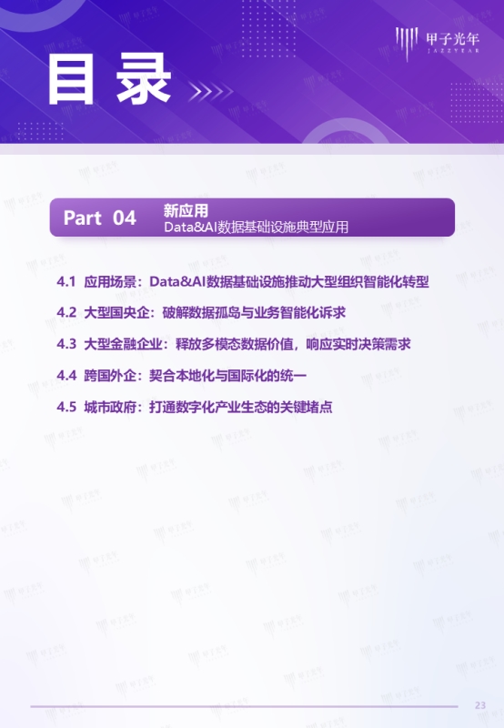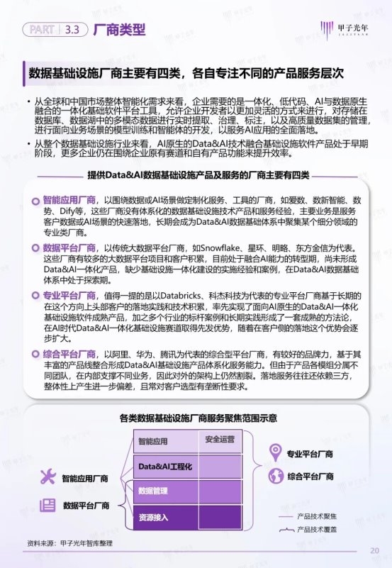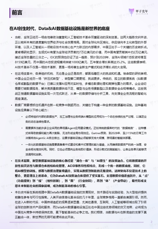 为探索分析Data&AI一体化的最新趋势,甲子光年智库特开展本次研究工作,希望系统梳理中国Data&AI数据基础设施的新趋势、新定义、新范式与新实践应用案例,为大型组织部署Data&AI数据基础设施提供前瞻性参考与可行性指南。