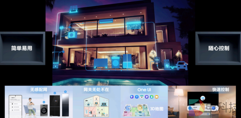 三星还打造了生态级AI协同能力。三星SmartThings平台, 将包括电视、显示器、Soundbar、无线充电底座等多品类家电集成中枢网关功能,构建了一个稳定高效且无处不在的家庭互联网络,从而将家人、家居、服务连接为一体,提供着以人为中心的智能生活服务。