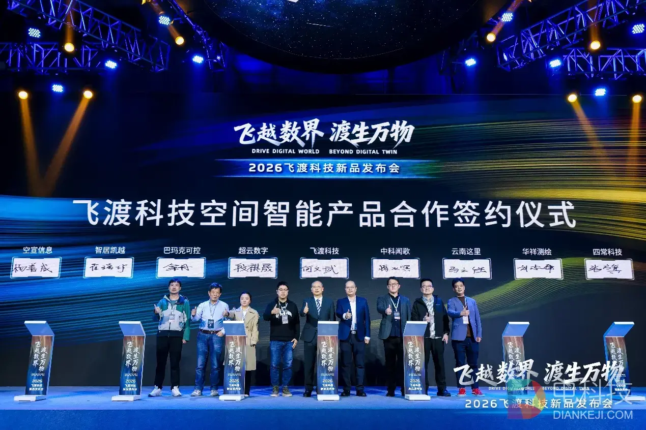 2026年3月18日,飞渡科技成功举办“飞越数界,渡生万物”的发布会,向全球宣告空间智能时代的全面到来。这场汇聚政府领导、行业领袖、合作伙伴及主流媒体的盛会,不仅揭开了新一代全栈信创空间智能产品的神秘面纱,更以硬核技术实力与前瞻战略布局,为中国数字经济高质量发展注入澎湃动能。现场座无虚席,线上直播观看量10万+,一场关于空间智能的认知革命正在席卷千行百业。
