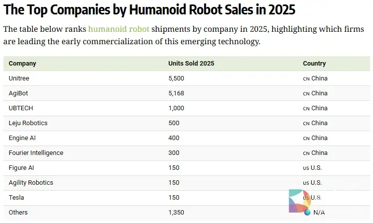 2025年,特斯拉交付了150辆Optimus,预计将于2027年开始公开销售。同样,其他美国领先公司 Figure AI 和 Agility Robotics 的出货量也大致相同。尽管迄今为止交付量有限,Figure AI 的估值仍飙升至 390 亿美元,远高于 2024 年的 26 亿美元。中国凭借完善的供应链体系、核心技术自主化突破及多场景落地优势,稳居全球人形机器人产业第一大国。