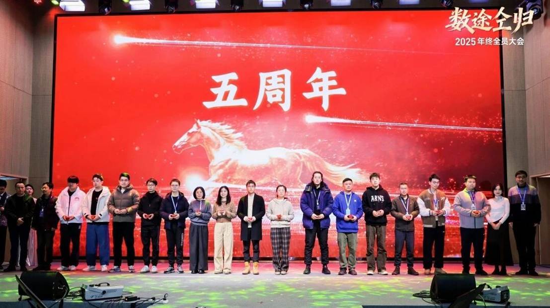 比业务数字更动人的,是每日互动始终如一的人文关怀。方毅在现场分享了一个温暖的数字:2025年,公司迎来了80多位“个二代”,公司持续兑现对员工家庭的关爱承诺,为这些家庭现场发放了“仝(AI)的新生礼”;同时,公司也为服务满五周年、十周年的员工颁发了特别的纪念。