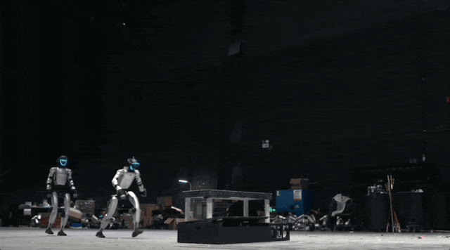 节目中的相对定位与环境交互,跑酷翻桌动作要求机器人在高速运动中精准判断自身与障碍物的相对位置,并动态调整步态完成跨越,这一能力与机器人向货架码放货物、在狭小空间穿行、上下楼梯等任务需求高度一致。