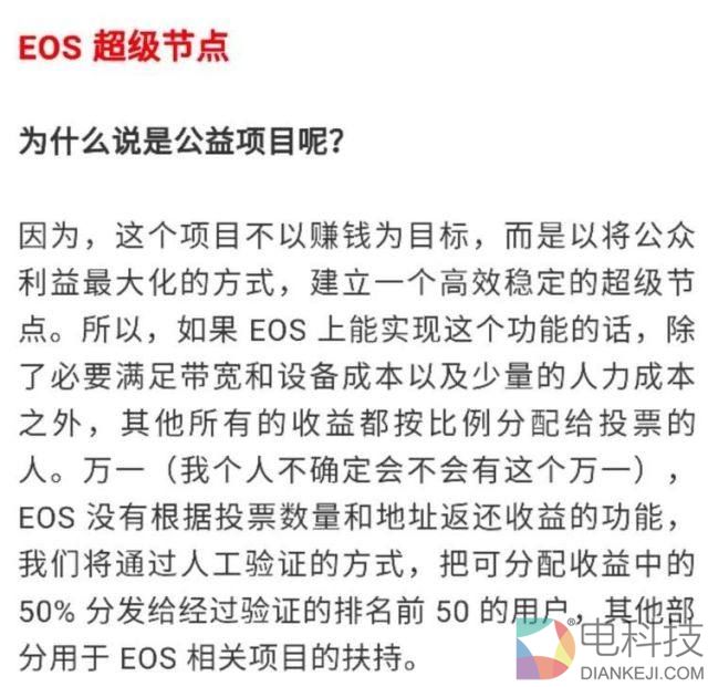 今年 3 月老猫高调宣布参选时在文章中为自己拉票,他表示,将会把做超级节点所获得的 EOS,扣除成本后全部分红给投票者。