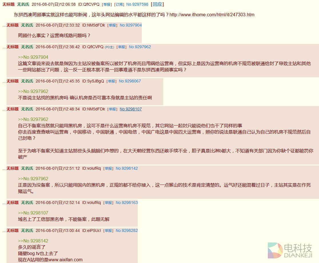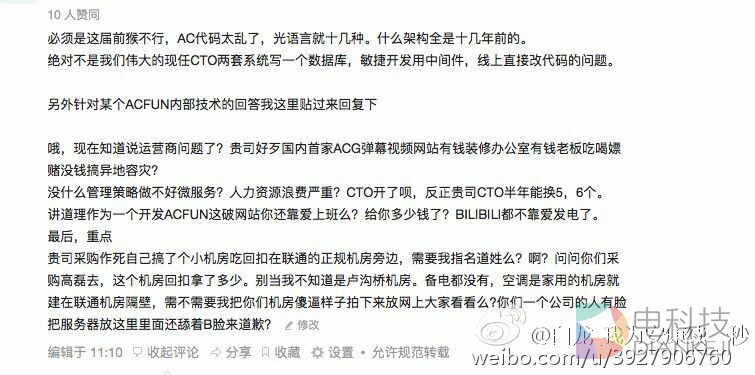 而知乎则是基本是一面倒的A站黑,逢A站出事必上知乎这基本不会有问题——很多来自内斗严重的A站内部声音可能是A站乱象的一手证据。问题《如何看待ACFUN自2016年8月4日上午开始的网站崩溃问题?》也保持了这个传统,第一时间开始深扒。
