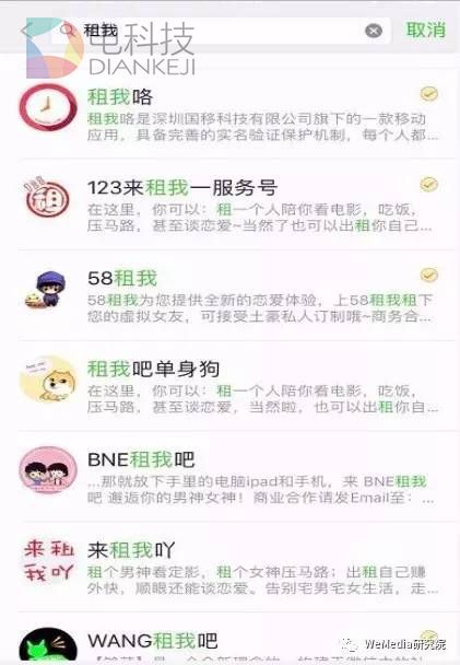 他将养殖账号的流程分为:淘宝购买公众号→公众号更名为“租我”、“约我”等诱惑类名称→用假资料完善公众号内容→底部留下工作微信号→开始朋友圈引流。