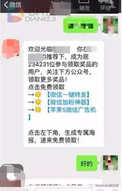 规则设置往往分为2种,一类是像“一毛钱抢购面膜”、“浪琴手表”活动,通过抽奖、抢购等方式赚取物流差价。一类是免费赠送产品的活动,即让 5-15个好友关注微信号后即可免费拿到产品,以此涨粉。
