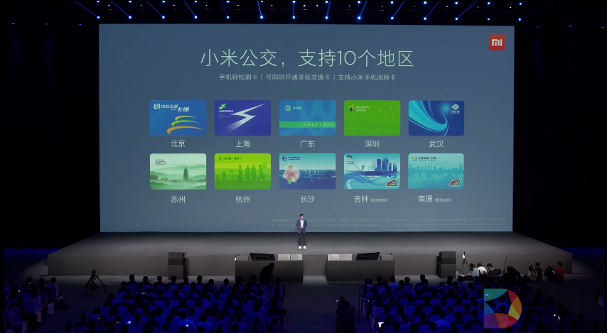 小米6发布会上,小米宣布支持10个地区交通卡。