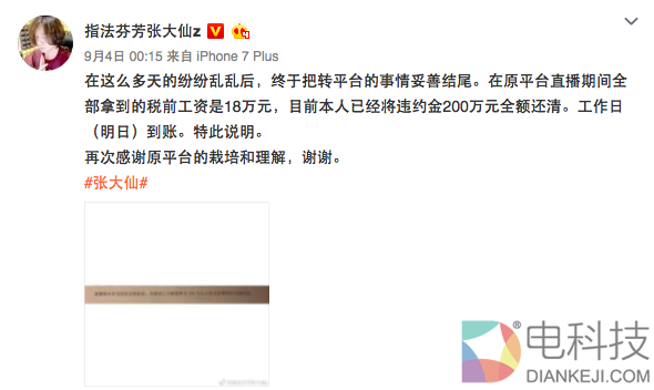 斗鱼前一阵挖来的张大仙就为跳槽付出了不小的代价。9月4日,张大仙微博对外宣布,已向企鹅电竞平台赔偿200万违约金。很多人都知道,张大仙是企鹅电竞一手培养起来的网红主播,与企鹅有独家合约,但因为薪资原因跳到了斗鱼,经过一段时间的协调,纠纷终于结束。