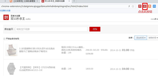 进入http://liulanqi.baidu.com/网站下载安装程序,安装完毕,启动它。在浏览器地址栏的右侧,单击“秒”字按钮(如图1),进入天猫登录界面,输入相应信息,进入宝贝添加页面。