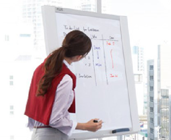 普乐士NF-20系列外形尺寸与挂纸板相同(650mm),安装/移动都很便捷。开会时可站在板的侧面一边说明一边书写,也可站在板的后方让大家的注意力集中到板上,书写面横向推动的操作方式是采用人们习惯了的平板电脑拖屏的操作模式,便于使用。板面倾斜度可调节为0度,7度,10度三个角度。高度也可调节。因此可根据使用场合不同调整高度与角度。边思考边整理思绪时调节为1650mm高度,倾斜度为7度,可坐着轻松书写;演讲或论题课题时调整为倾斜10度,1850mm高度,可站着书写,使阐述更加清晰具有说服力。