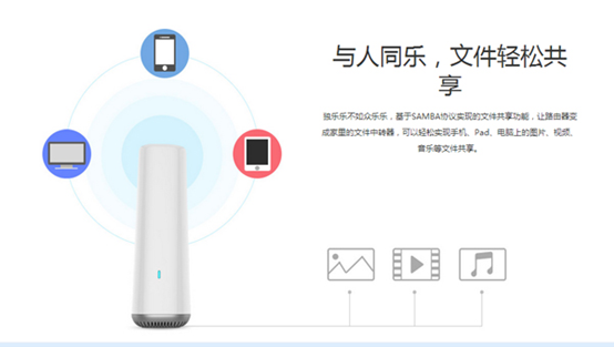 独乐乐不如众乐乐,基于SAMBA协议实现的文件共享功能,酷开智能无线路由器可以变成家里的文件中转器,轻松实现手机、Pad、电脑上的图片、视频、音乐等文件共享。