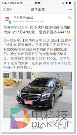 图:周鸿祎卖车搞机,二手奔驰最后成交价217万元