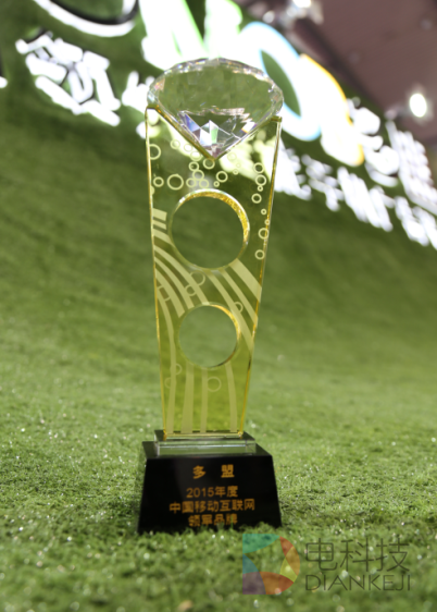 图为:多盟荣获“2015年度中国移动互联—领军品牌”大奖