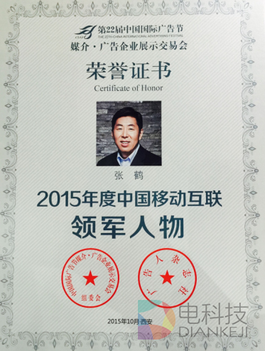 图为:多盟总裁张鹤荣获“2015年度中国移动互联—领军人物”大奖