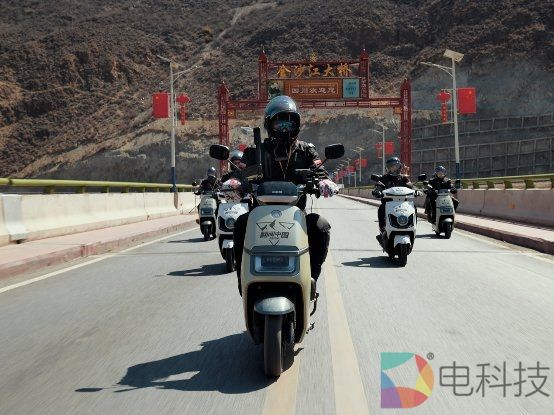 图:爱玛骑行车队行驶在金沙江大桥