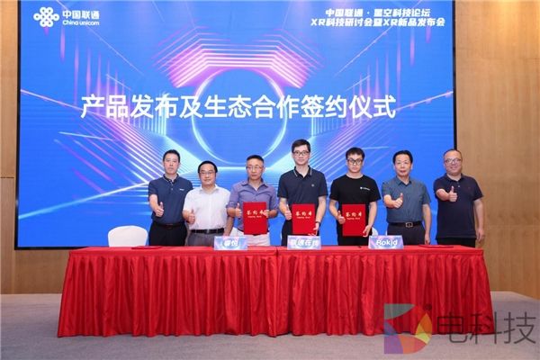 随后,大会现场也举行了XR生态合作伙伴签约仪式,由联通在线公司主导,携手睿悦、Rokid、四开花园、EasyAR、圆周率、insta360等合作伙伴共建XR生态,旨在汇聚起科技、产业、政策等各方力量,共同构筑健康完善的XR生态,协同推动XR产业的快速发展。