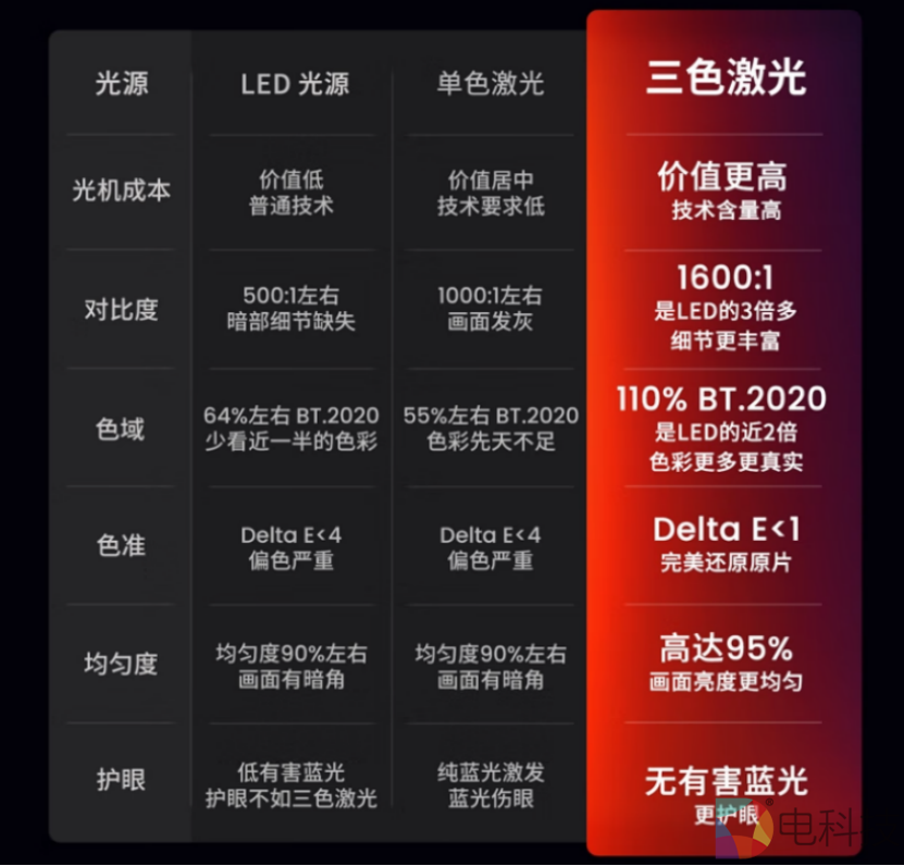 先从技术上来看,过去几年,坚果投影创新不止,尤其是摘下了激光光源这座投影领域的技术王冠。作为自然界最纯净的光源,激光的亮度可以轻松达到 10000 ANSI 流明以上的亮度、110% BT.2020 超广色域,至少 1000:1 的对比度,以及 20000 小时以上的使用寿命,这些极为优秀的性能让激光投影在色彩表达上远比 LED 光源优秀得多。