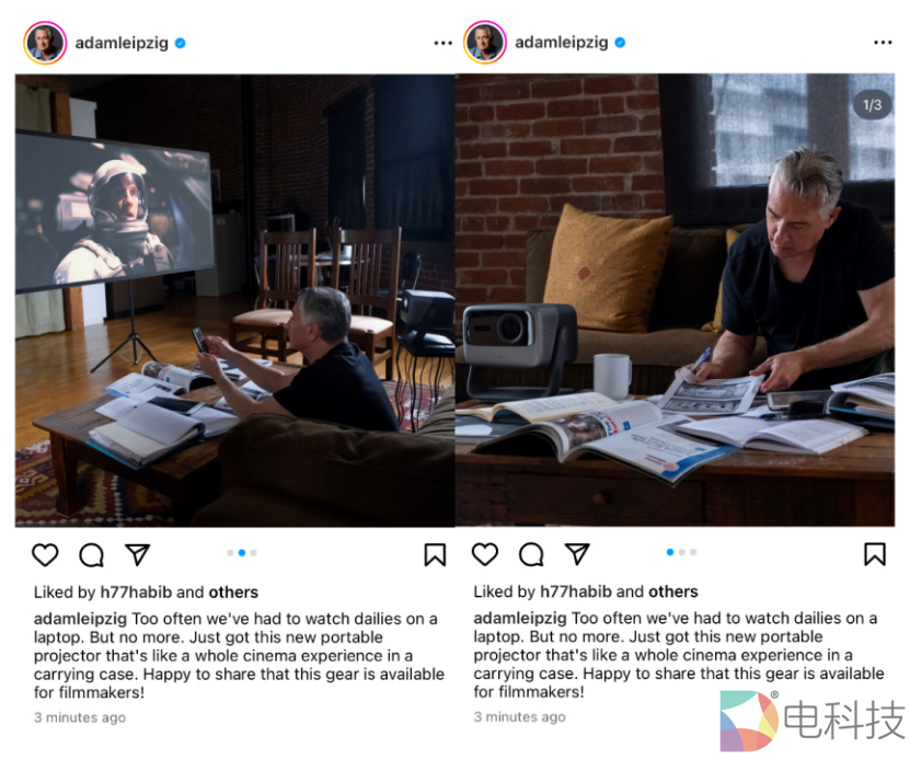 从专业人士层面来看,在坚果投影推出坚果 N1 Ultra 之后,奥斯卡的大咖们就纷纷入手,在社交平台上向粉丝强烈安利。比如奥斯卡著名制片人,曾经监制过影视经典《死亡诗社》的 Adam Leipzig,就在社交平台上晒出使用投影仪的动态照片。奥斯卡史上第一位女性最佳摄影奖获得者 Rachel Morrison,也分享了带孩子去户外露营,使用坚果 N1 Ultra 的动态。