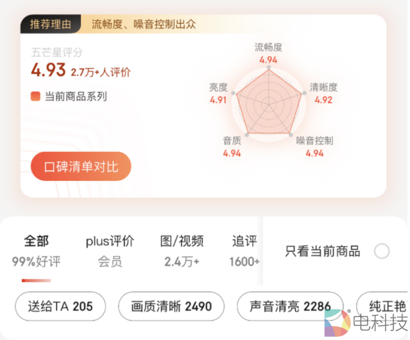 在口碑上,坚果投影实现了专业人士和普通消费者的双重认可。从普通消费者的角度来看,京东上坚果 N1S 系列的好评率在 99% 及以上。