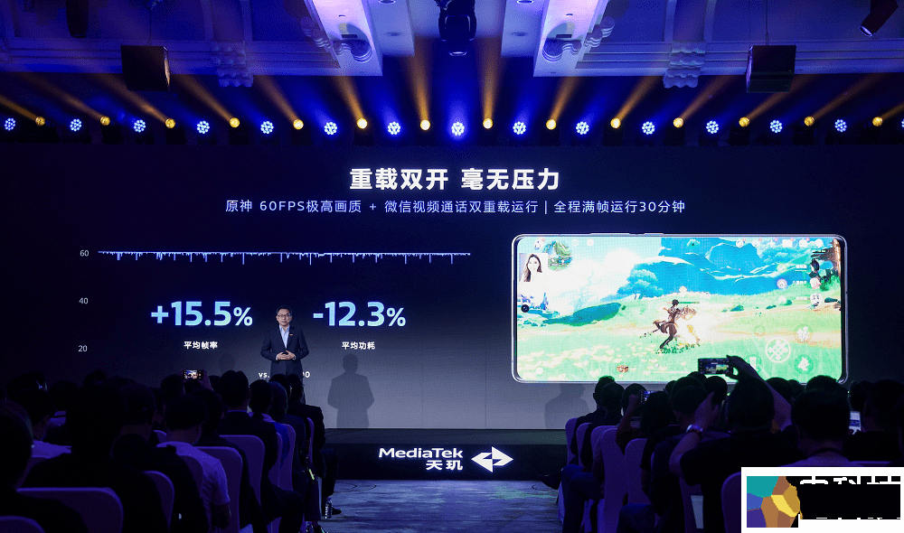 在高负载和多应用并行场景,全大核8个高性能核心协同计算,把每一份性能都用在“刀刃上”,超级强悍的性能和能效让天玑9300应对自如。在实测中,搭载天玑9300的终端在游玩最高画质《原神》30分钟的同时进行微信视频通话,平均帧率提升超过15%,功耗却降低约12%,这简直就是能效魔法。