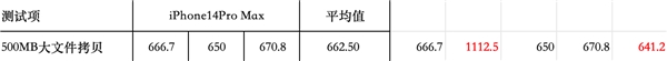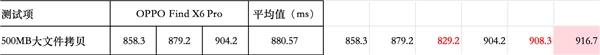 之后是大文件传输速度的比拼,这项测试不仅和接口、内存的传输速率有关,同时也是十分考验系统优化的流程,以一份500M大小的文件作为测试样本,ColorOS 14总耗时880.57 毫秒,与iOS 17的662.50毫秒相比有一定的差距,这个环节iOS 17的领先幅度很大。