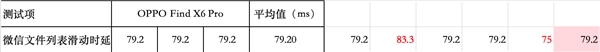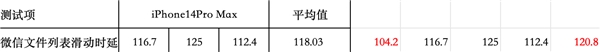 之后的“应用内文件加载测试”里,在微信内打开Excel文件然后滑动的测试场景下,ColorOS 14滑动时延仅有79.20 毫秒,相较于iOS 17的118.03毫秒,反应速度快了进33%。