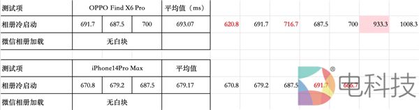 最后的“微信聊天过程中视频的打开加载速度”测试,时间节点以点开视频文件起,到开始播放第一帧画面为止,ColorOS 14在这个过程中总耗时522.20 毫秒,iOS 17则为545.83毫秒,ColorOS 14略微领先。