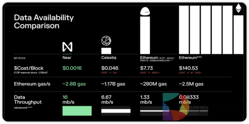 因此各方均在降低成本方面做了很多努力。从目前的DA方案来看,以Near DA的成本最低,约$0.0016/block. 其次是Celestia,EngenLayer, EIP4844等。