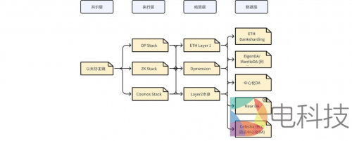 上一段,有讲到,将区块链模块化来看,可以分为执行层,数据可用性层,共识层和结算层。