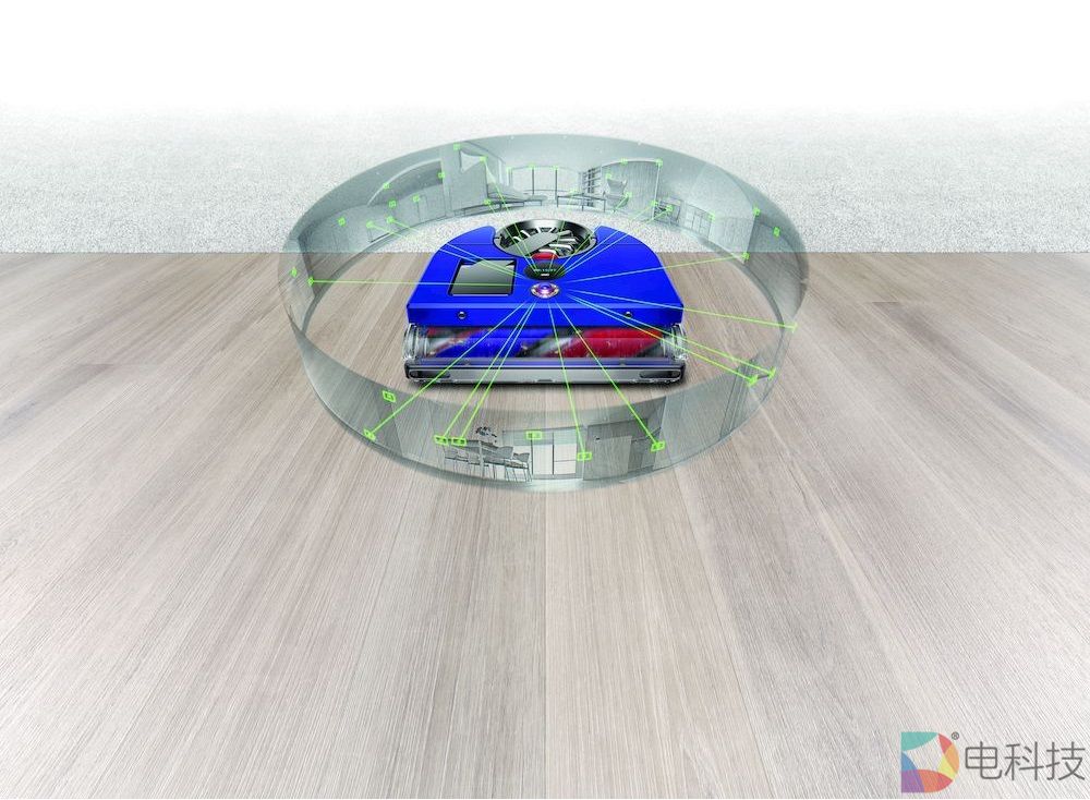 戴森吸尘机器人配备的360°智能导航,采用戴森独特的即时定位与地图构建系统(SLAM),搭载26个传感器,能够持续分析周围环境,顶部配备的8个LED光源会在低亮度条件下主动打开,黑暗环境下,也能帮助识别周围环境,“找到”需要清洁的区域和“记住”已清洁的区域,并在清洁过程中避开障碍物和无需清洁区域。其搭载的压电式传感器以每秒15,000次的频率监测灰尘浓度,并指导机器按需自动调节吸力[5]。