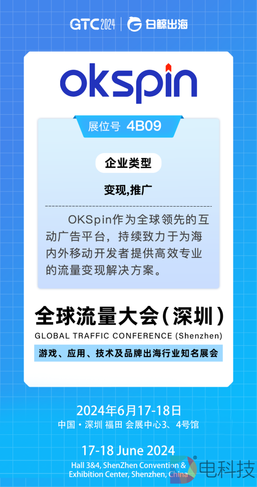 在数字化转型的浪潮中,OKSpin以其开放的姿态、多元的视角和创新的精神,不断引领着行业的发展潮流。OKSpin荣幸地宣布,此次将出席由白鲸出海主办的GTC2024全国流量大会,与来自全球的行业精英共同探讨和分享跨境出海的新趋势、新技术和新机遇.