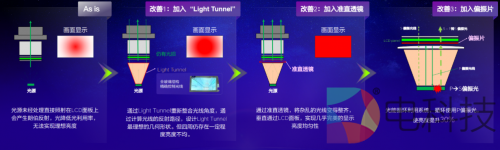 其次,爱普生以Light Tunnel为基础,构建起一套精密且高效的光能循环利用系统,大大改善了投影系统的光效表现。作为系统核心,Light Tunnel从根本上重构了投影系统的光路设计:通过重新整合光线角度和计算光线的反射路径,设计Light Tunnel最理想的几何形状,从而将原本分散的光线高效整合为高度集中的光束,大幅提升光能利用率;继而通过准直透镜,将杂乱的光线垂直穿透LCD面板,这一过程不仅确保了光线传输的稳定性,更实现了高达97.3%*1的显示亮度均匀性;而光能循环利用系统对P偏振光的循环利用,带来30%的亮度提升,让投影画面在亮度上实现了质的飞跃。