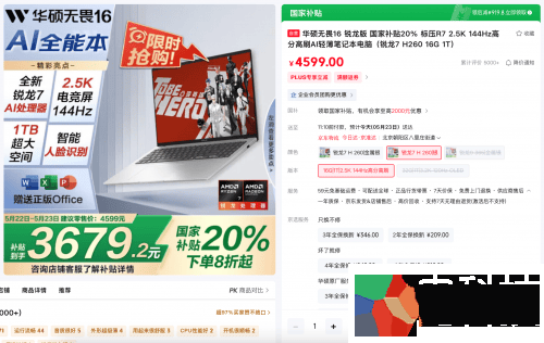 618大促叠加国家补贴,华硕无畏16 2025到手价仅3679.2元,选购价值极高,追求大屏高刷+高性能的小伙伴们不要错过。