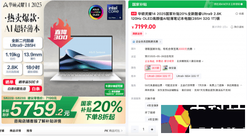 618大促叠加国家补贴,华硕灵耀14 2025到手价仅5759.2元,支持6期免息、晒单返E卡,无论是从硬件配置、轻薄设计还是AI体验上,都无愧为职场旗舰轻薄本之选。