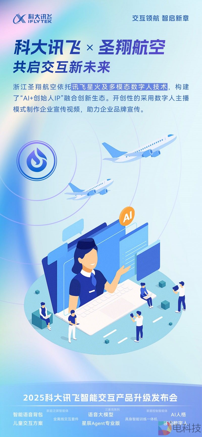 6月12日,2025科大讯飞智能交互产品升级发布会于深圳顺利举办。以“交互领航 智启新章”为主题,数百位企业代表、优秀开发者与AI技术专家齐聚一堂,共同开启大模型时代的交互新未来。作为科大讯飞生态合作伙伴,浙江圣翔航空科技有限公司重磅亮相,展示其深度融合讯飞多模态数字人技术的“AI+创始人IP”创新应用成果。
