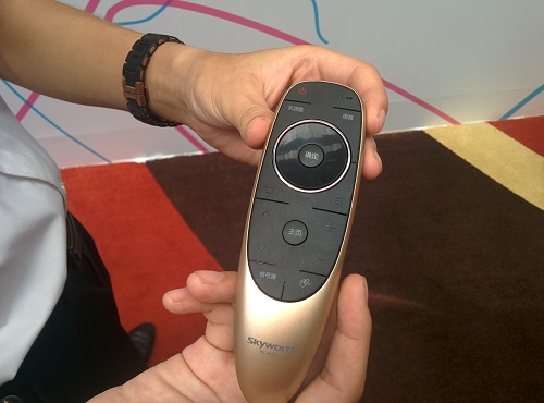 对于与用户操作直接相关的遥控器,创维在新产品中采用了全新的设计,中间的圆形操作区域采用了类似iPod的滑动设计,右下角的鼠标按键可一键切换至“空鼠”模式,遥控器支持蓝牙连接,操作形式与电视内置的酷开系统高度融合。
