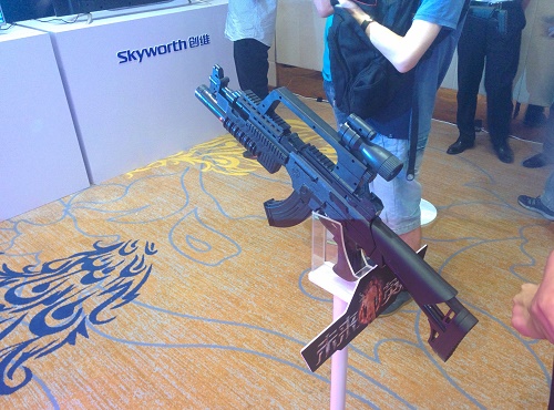 射击游戏怎么少得了枪?创维GLED-极客互联网电视在游戏操控上为使用者准备了“仿真枪”外设操控装置,结合游戏4K级别的超清画质,为用户打造身临其境的绝佳游戏感受。