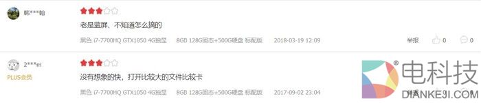 在用户评论中我们发现,与这位网友有过相似经历的买家也不在少数,而且都是机子刚到手没多久就出现了蓝屏、死机的问题。